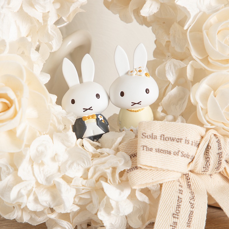 結婚式や記念日にピッタリの新郎新婦姿のミッフィーがリースの真ん中にちょこん。