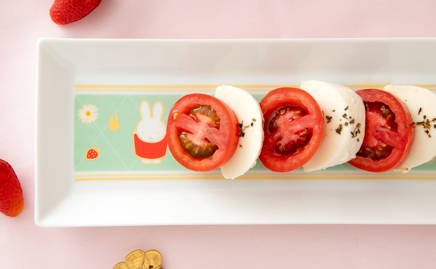 ミッフィーといちごやお花のデザインがかわいい