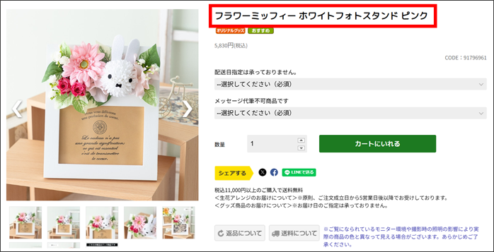 納期については商品、決済方法によっても異なりますので、グッズ商品のお届けについての項、アレンジメントのお届けについての項もそれぞれご参照ください。