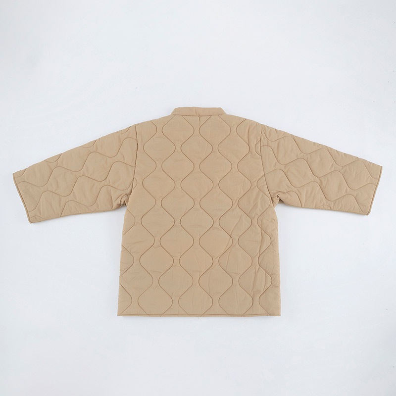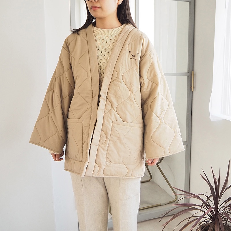 生地は軽くしなやかなポリエステルやナイロン、中綿はリサイクルポリエステルわたを使用。