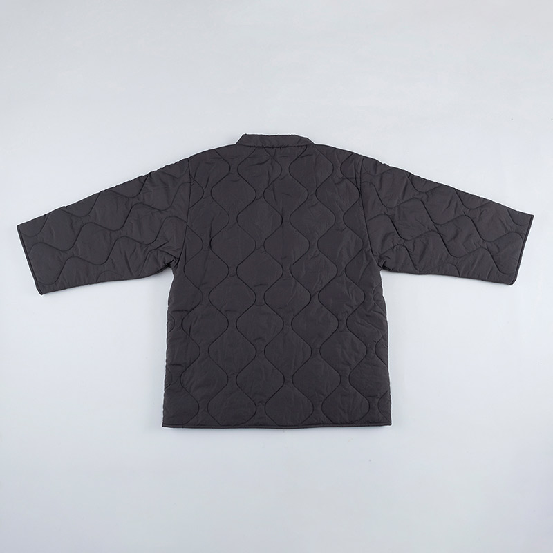 生地は軽くしなやかなポリエステルやナイロン、中綿はリサイクルポリエステルわたを使用。