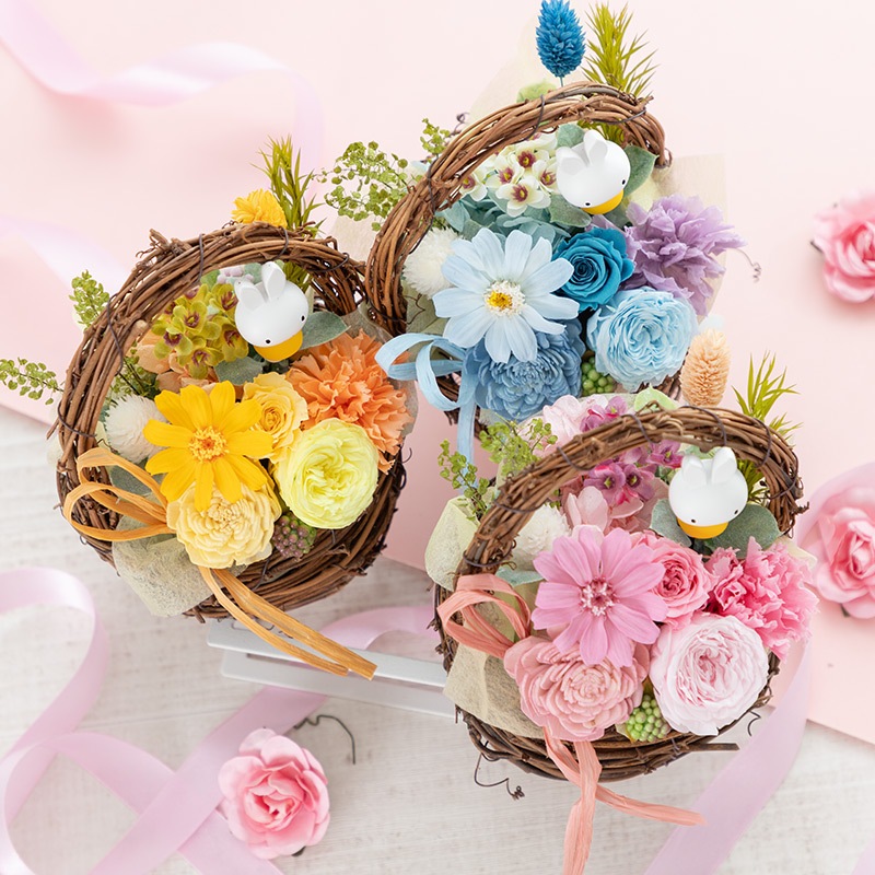 自然素材ならではの温かみと、プリザーブドフラワーならではの美しさを長くお楽しみいただけます。