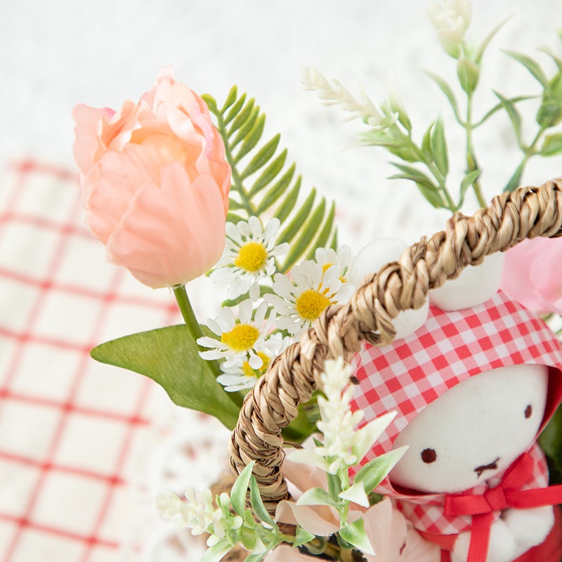 Flower Miffy アートフラワーアレンジ ちょっこりサンキューマスコット ギンガムチェック サーモンピンク
