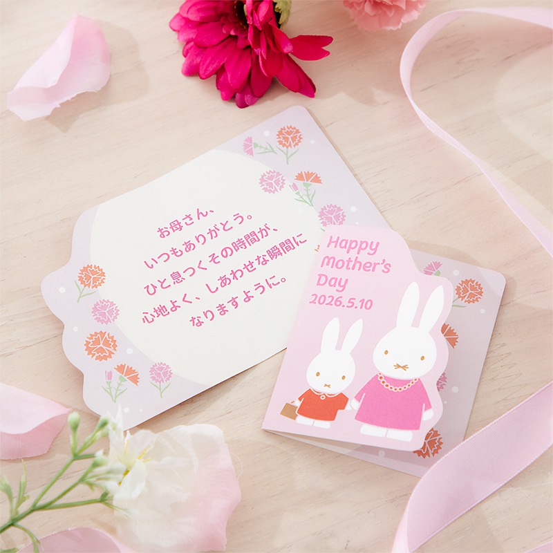 お母さんへの感謝を載せたメッセージカードを添えてお届けします。